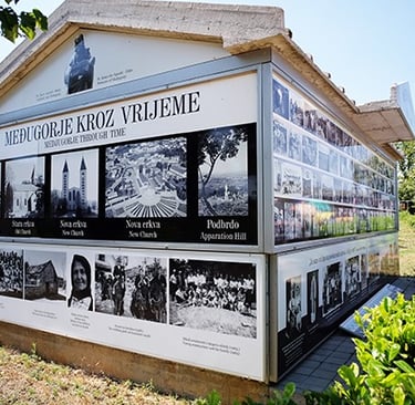 Not far from the tomb of Father Slavko is a display showing a photo history of Medjugorje. The photos depict the village as it looked in 1981, and the visionaries from the time the first apparitions began.
